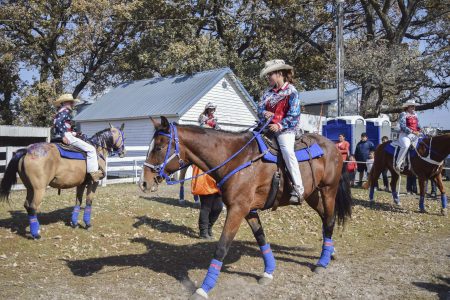 Horses and riders from Dragonfire Dancing Horses, of Hampton, put on shows for visitors at Pumpkins and Ponies at the SpringVale Farm outside Humboldt on Sunday afternoon.