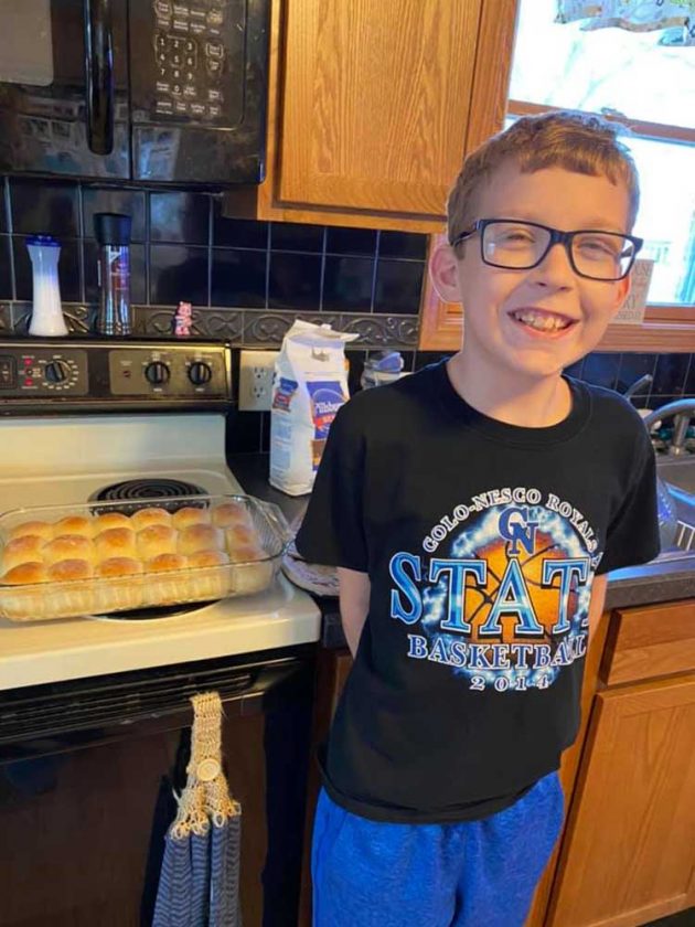 -Submitted photo Max Johnson, a fifth-grader with the Douglas Dreamers 4-H Club, stands proudly next to his freshly-baked dinner rolls he made during a Zoom workshop with his club in November.