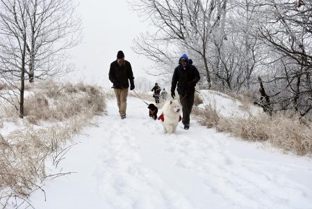 A few local entries were earned as Pete Wilcox, of Webster City, returned with his Samoyed, whose fluffy cream-tone fur was a darker contrast to the fresh white snow on the trails Friday than it was on muddy trails in 2020’s First Day Hike.