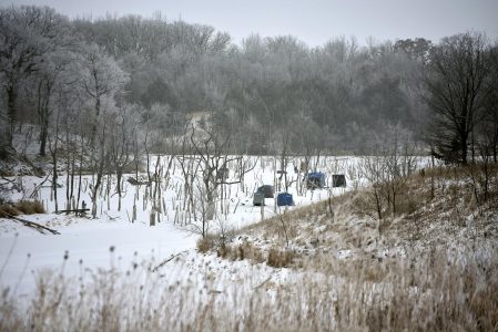 -Messenger photo by Elijah Decious Ice fishers await the first bites of 2021 on Brushy Creek.