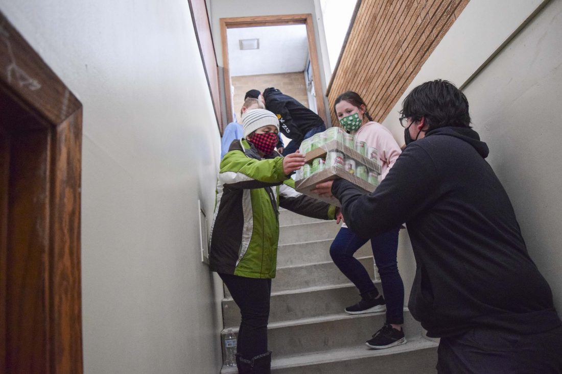 On Friday, volunteers from local Girl Scout and Boy Scout troops helped move hundreds of pounds of food donations from the basement of the building up to the main floor to the new food pantry.