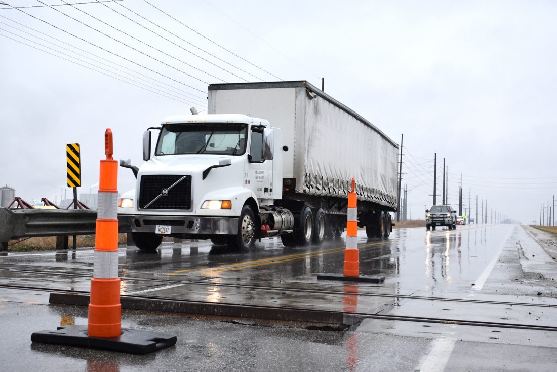 A crew with Union Pacific changed out the crossing pad and patched the asphalt Tuesday afternoon, according to Tim McMahan, media representative for Union Pacific.