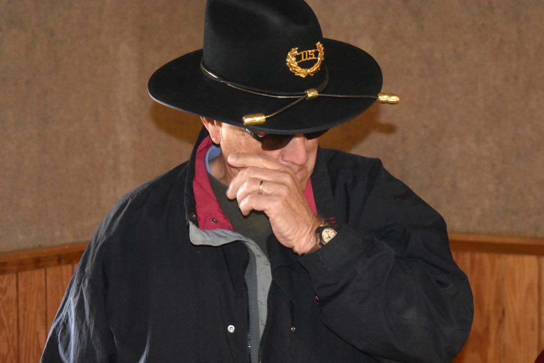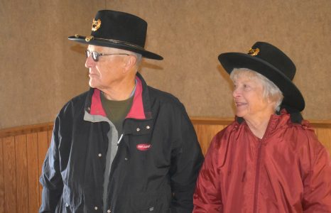 Jan Wilson, left, and his wife, Phyllis Wilson, look on after receiving their hats to be the grand marshals of the Frontier Days Parade.