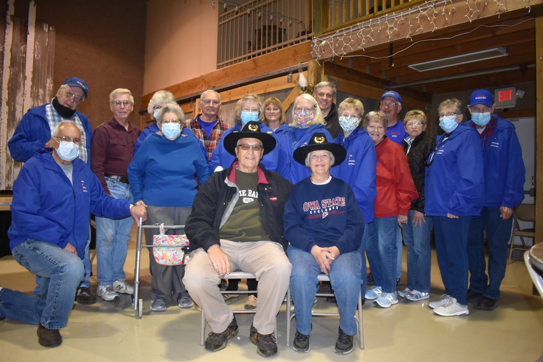 Members of Pride In Community Appearance pose with Jan and Phyllis Wilson, seated, at the Fort Museum and Frontier Village Opera House on Wednesday. The Fort Dodge couple are the grand marshals for the 2021 Frontier Days Parade.
