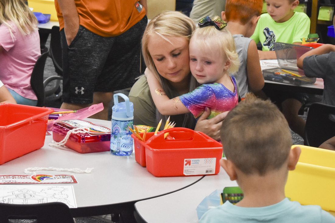 Some tears were shed by Norah Krug, a kindergartner in Morgan Merrill’s class, and her mom, Jesse Krug, on the first day of school at the Early Childhood Center on Tuesday morning.