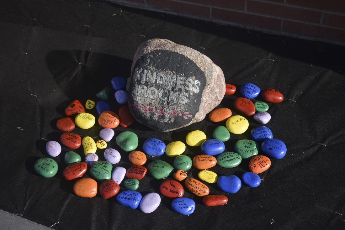 Early Childhood Center Principal Carmen Banwart gave students, parents and staff painted rocks to write inspirational notes on to add to the “Kindness Rocks” garden in the ECC’s playground.