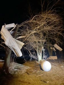 Metal siding wraps around a tree east of Knierim in Calhoun County on Dec. 15, 2021. Jillian Nelson reported that her family lost three outbuildings, had their propane tank flipped, and had some damage to a bedroom. President Joe Biden on Wednesday issued a Presidential Major Disaster Declaration for Webster County and 24 other counties to help them recover from the December 2021 storm.