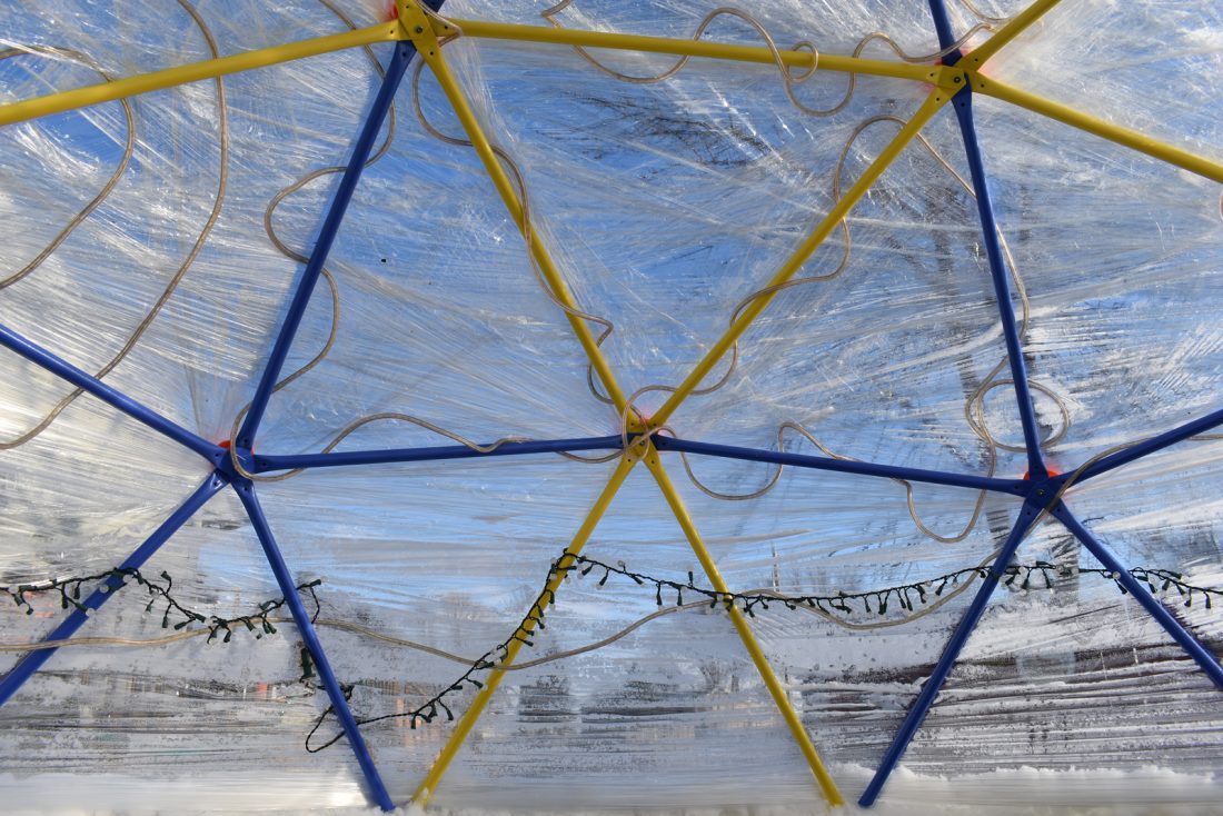 It features a 10-foot jungle gym for the dome. He used shrink wrap around the top to keep it enclosed.