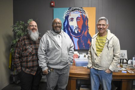 The Beacon of Hope marked 12 years at the end of March. From left are chaplains Brian Bidleman, the Rev. Eric Howard and Executive Director Steve Roe.