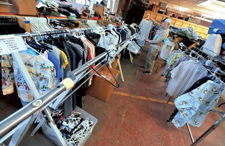 Beacon of Hope resident Dale Gustafson helps sort clothing in the intake area of the Second Chance thrift store.