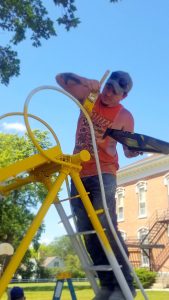 Then I thought of Josh. Within a few minutes of me texting him, he responded with a yes. (I really appreciated this, since Josh has a full-time job at Bowie International in Lake City, plus his kids keep him busy when he’s not at work.) The entire painting project took a few weeks and multiple painting sessions totaling more than 90 hours of volunteer labor. Josh and Presley devoted many hours to helping paint the playground equipment and never complained about the August heat or the task at hand. We couldn’t have done it without them.