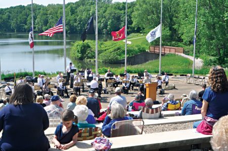 A crowd of about 150 people filled the amphitheater of Veterans Memorial Park for the 2021 Memorial Day ceremony. The ceremony returned to the park under clear blue skies after the COVID-19 pandemic reduced the 2020 ceremony to a short event in the parking lot of Veterans of Foreign Wars Post 1856.