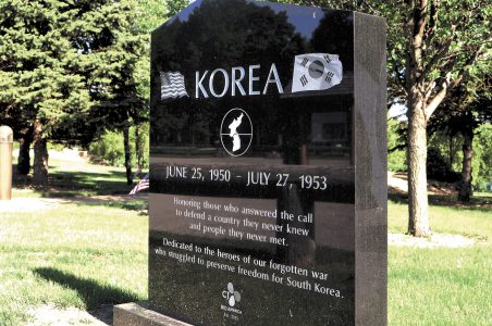 Its inscription says: “Honoring those who answered the call to defend a country they never knew and people they never met. Dedicated to the heroes of our forgotten war who struggled to preserve freedom for South Korea.”