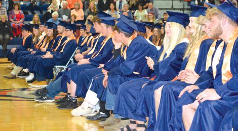 The Manson Northwest Webster Class of 2022 waits to receive their diplomas Sunday afternoon in the MNW gymnasium.