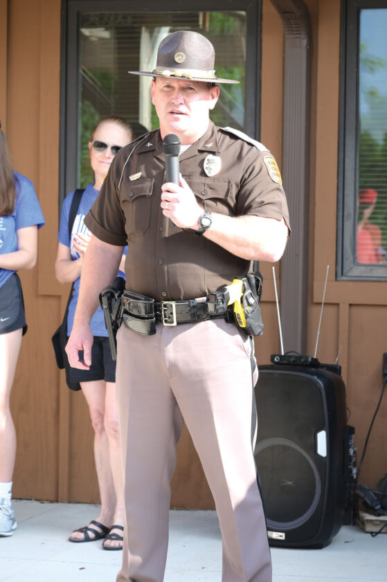 Col. Nathan Fulk of the Iowa State Patrol addresses the attendees of the Hamilton County Peace Officers Honor Ceremony on Saturday at the Briggs Woods Golf Course near Webster City.