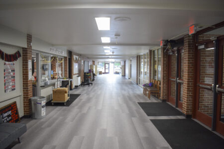 The Cooper Elementary School renovation replaced the flooring across the school and took out some fire doors, opening up the main hallway and making it brighter.