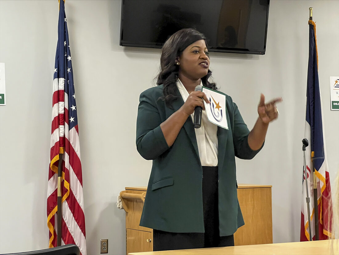 Democratic candidate for Iowa Governor Deidre DeJear spoke at a campaign event at Iowa Central’s Triton Cafe on Thursday evening.
