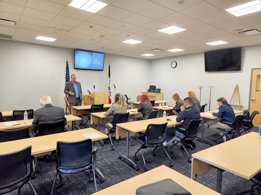 Chad Schaeffer, chief development officer for the city of Fort Dodge, speaks to a group of youth program coordinators from Kosovo Wednesday at Iowa Central Community College.