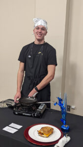 Carson Widlund, a student at Manson Northwest Webster, competes in the Grilled Cheese Challenge during the FCCLA Fall Leadership Rally in Des Moines recently. Widlund finished third in the event.