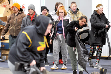 More than 100 people braved the 10-degree morning temperatures and when the doors opened at 9 a.m., they rushed into the warm Career Education Building and got busy collecting donated items that included clothes, shoes, housewares and even a large potted tree collected during the past month by Iowa Central students, staff and educators.