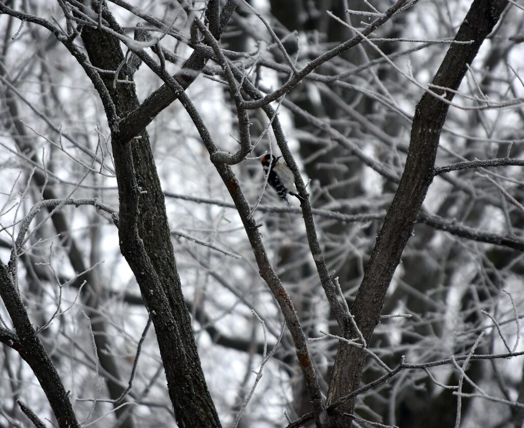 A red-headed woodpecker breaks the soothing silence of a brisk winter day on Jan. 1, 2021, at Brushy Creek State Recreation Area with persistent taps.