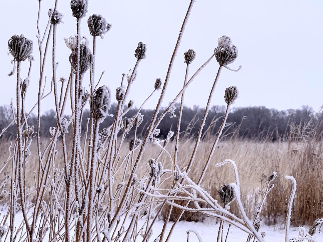 In the dead of winter, even the least attractive weeds and flowers find a refreshing new look after being glazed by ice and snow in a blizzard.