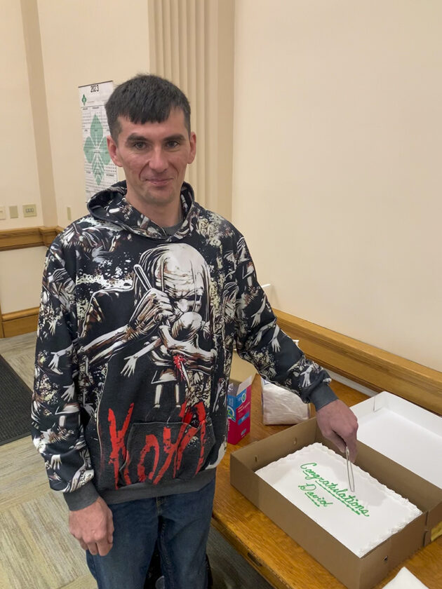 David Casey, of Fort Dodge, celebrated his graduation from the Webster County Drug Court program on Friday morning. Casey has 588 days sober.