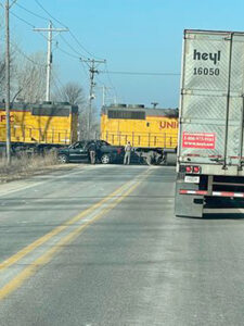 According to Webster County Sheriff’s Deputy Pat Gerhardt, the driver of the truck failed to stop at the railroad crossing and struck the train as it passed by.