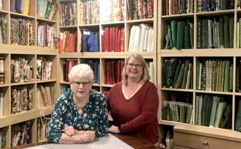 Fort Dodge quilters Bev Buske and daughter Karen Barkley are pictured in the very stocked fabric room of their basement.