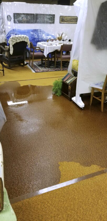 A leaky roof combined with the spring snow melt and rains left several areas of the Webster County Museum in Otho with standing water on the floor in 2019.