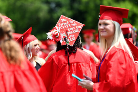 Kieara Schlick, of Fort Dodge, decorated her cap for Fort Dodge Senior High’s graduation ceremony on Sunday.