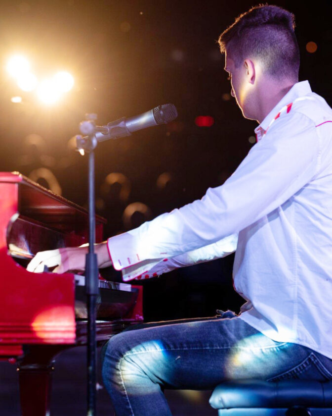 Brady O’Brien plays the piano at last summer’s Brady O’Brien Live concert in Terry Moehnke Veterans Park.
