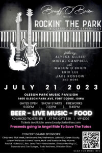The recent momentum of music at the Oleson Park Bandshell will continue on Friday, when Brady O’Brien Live presents its Rockin’ The Park concert to support Angel Ride To Save the Tatas.
