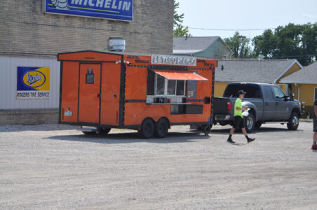 A customer walks away from the El Taco Riendo food trailer on Fifth Avenue South Monday afternoon. The Fort Dodge City Council on Monday evening approved the second reading of the city’s first regulations on mobile food vendors.