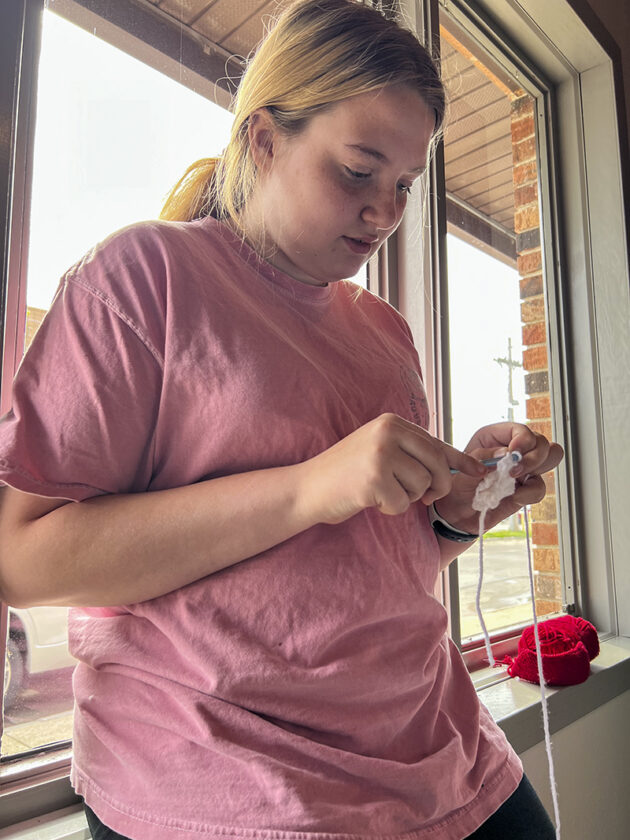 This group is more than just a handful of ladies who like to knit or crochet. Friendships and community have blossomed between the stitches. Esterline and her husband are originally from California and don’t have any family nearby, so the ladies at the knitting group have filled that role for her.