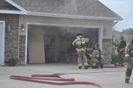 When police and firefighters arrived, smoke was billowing out of the home’s open garage door. Firefighters advanced one hoseline through the garage and into the home. The fire was out within about 10 minutes of their arrival.