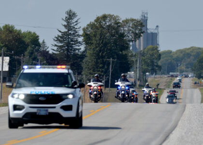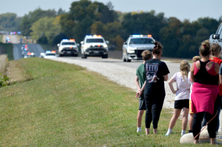 The funeral procession for slain Algona Police Officer Kevin Cram moves east along 210th Street Wednesday afternoon.