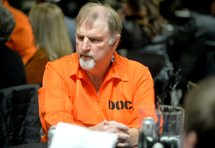 Dennis Zigrang, of Thor, makes sure nobody will mess with his food Saturday night at the Community Health Center’s annual fundraiser, “Costumes and Comedy,” at Shimkat Motor Company. Zigrand said he was only “at large for a little bit.”