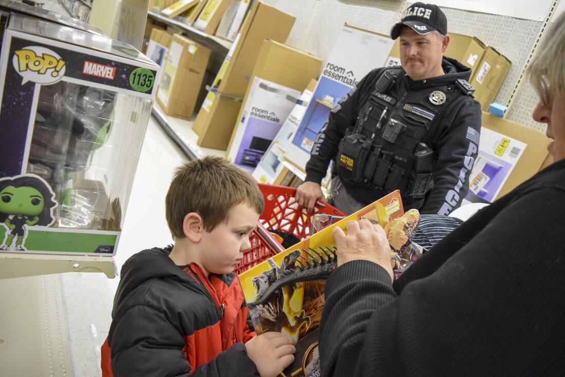 Fort Dodge Police Chief Dennis Quinn helps Eskel Hook, 6, pick out some gifts during the Santa Cops shopping event at Target on Wednesday evening.