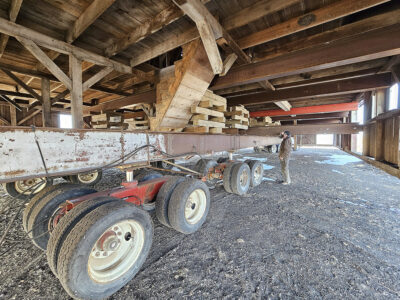 While the move itself didn’t take too long, the Vote Housing Moving crew had started preparing the barn for this process earlier this fall. The Melohns also worked for several weeks this fall removing livestock pens, stanchions and more from the barn’s interior.