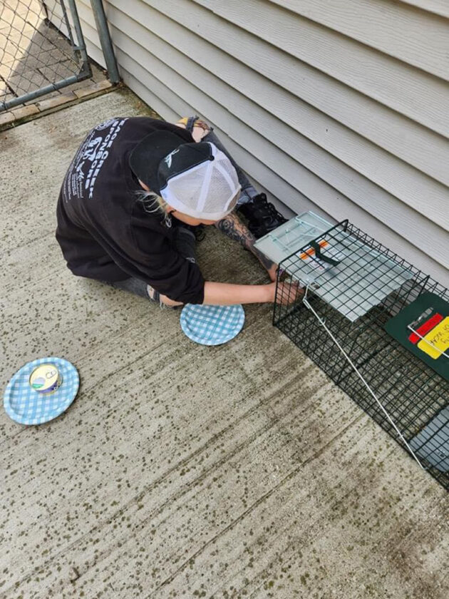 Animal Protection Officer Haley Studyvin sets a live animal trap during a trap-neuter-release operation by Webster County Animal Protection.