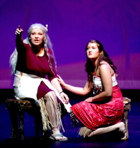 Kiley Swanson, left, performs as Gramma Tala and Lydia Bair is Moana in Stage Door Productions presentation of “Moana Jr.” on Friday at Iowa Central Community College.