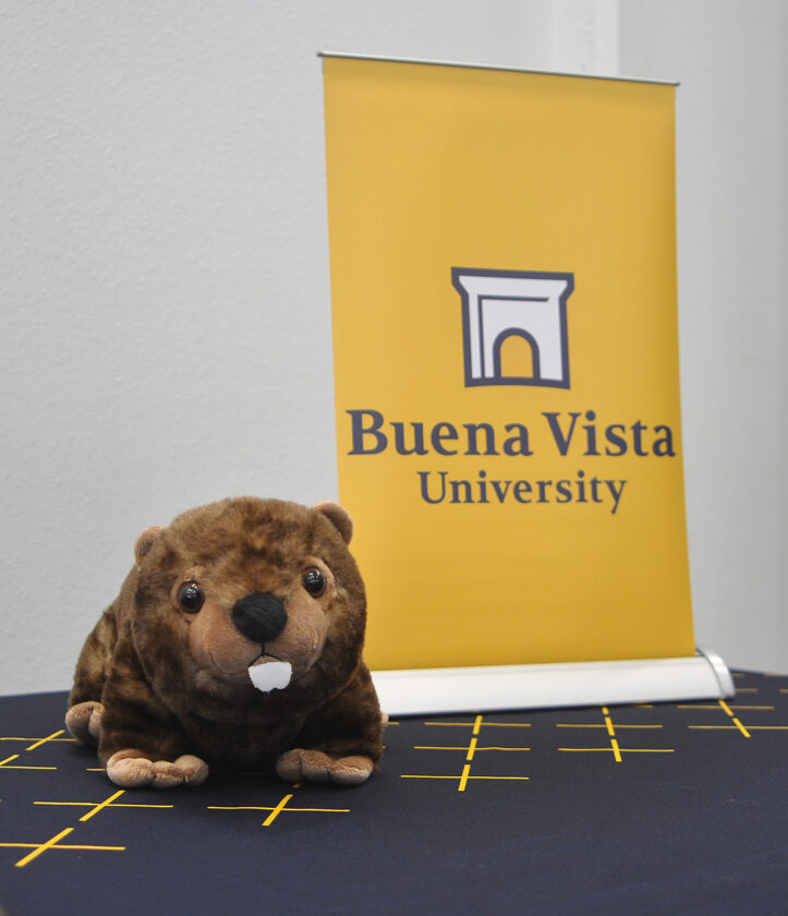 A stuffed version of the beaver, which serves as the mascot for Buena Vista University in Storm Lake, was on display Tuesday afternoon during an event celebrating 50 years of partnership between