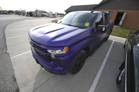 Cat Nicol, of Urbandale, showcases a 2022 Chevy Silverado RST during Cruise to the Woods Sunday at Lizard Creek Ranch.
