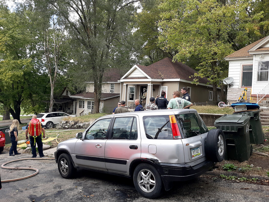 Firefighters and police officers are on the scene of a house fire at 710 Dakota St. at around noon Thursday. The fire was contained to one room and no one was injured.