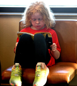 Jordyn Patterson, 5, of Fort Dodge, waits patiently during the Fall Fly-in flights and pancakes breakfast on Saturday at the Fort Dodge Regional Airport.