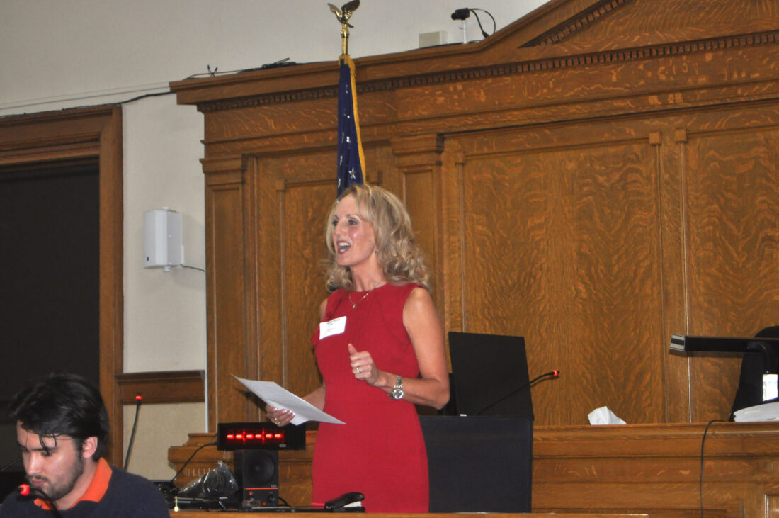 Wendy Larson speaks to Republican delegates Tuesday evening in the Calhoun County Courthouse during the nominating convention for the District 7 seat in the Iowa House of Representatives. She won the nomination over Dan DeWall.