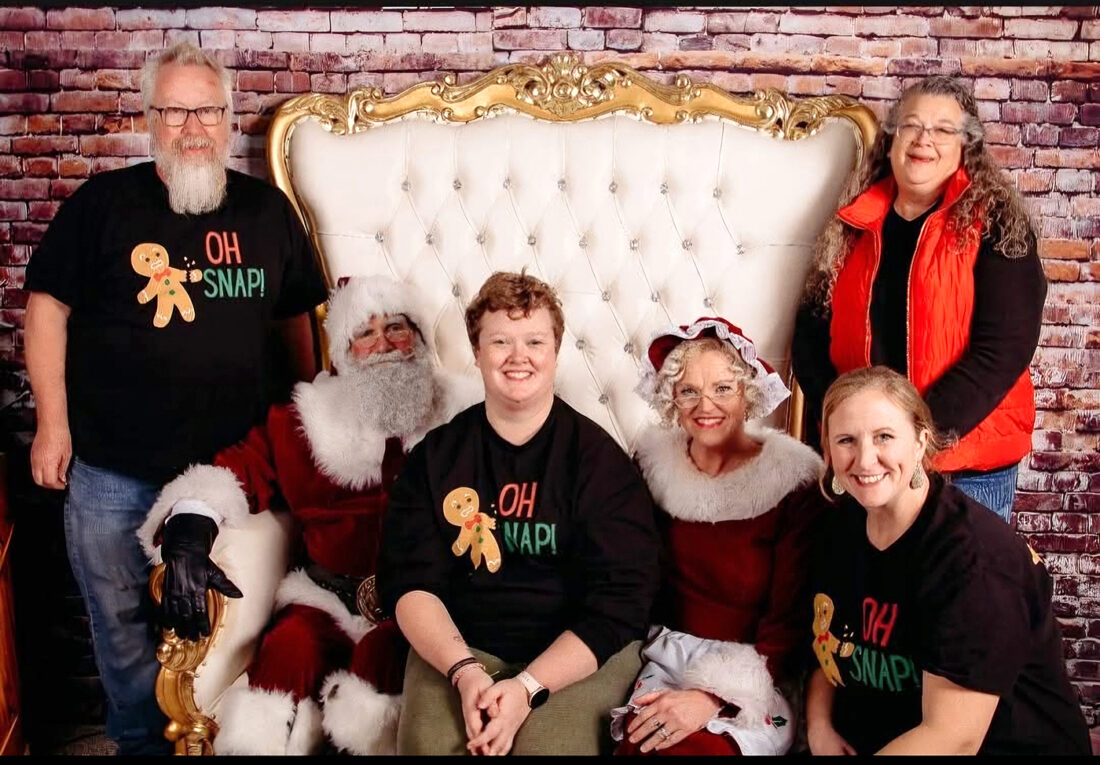 Chris and Marla Ramaekers are pictured in back. Pictured in front from left are Santa, Olivia Renken, Mrs. Claus, and Kelsey Wigans.
