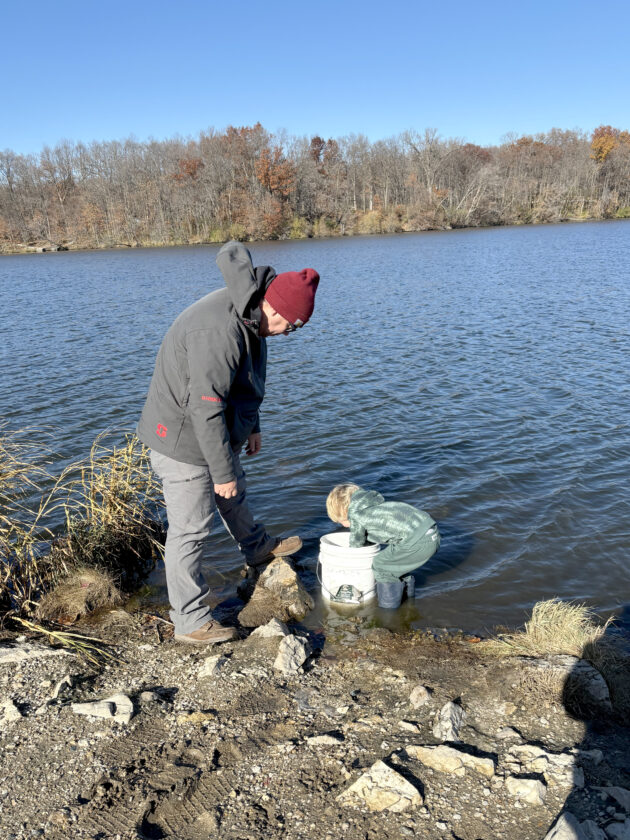 “The lake at Briggs Woods was built in 1968 from a former farm pasture,” according to retired Hamilton County Conservation Executive Director Brian Holt. “Once filled with water, the state began stocking it with bass, bluegill and catfish. They also brought in 50,000 walleye ‘sackfry,’ just-hatched fish about a half inch long for a number of years. A 3% survival rate of such young fish was considered very successful, but for many years it was less than that.”