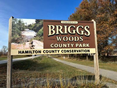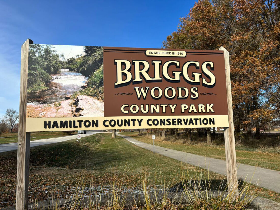 This sign highlights the entrance to Briggs Woods County Park near Webster City.